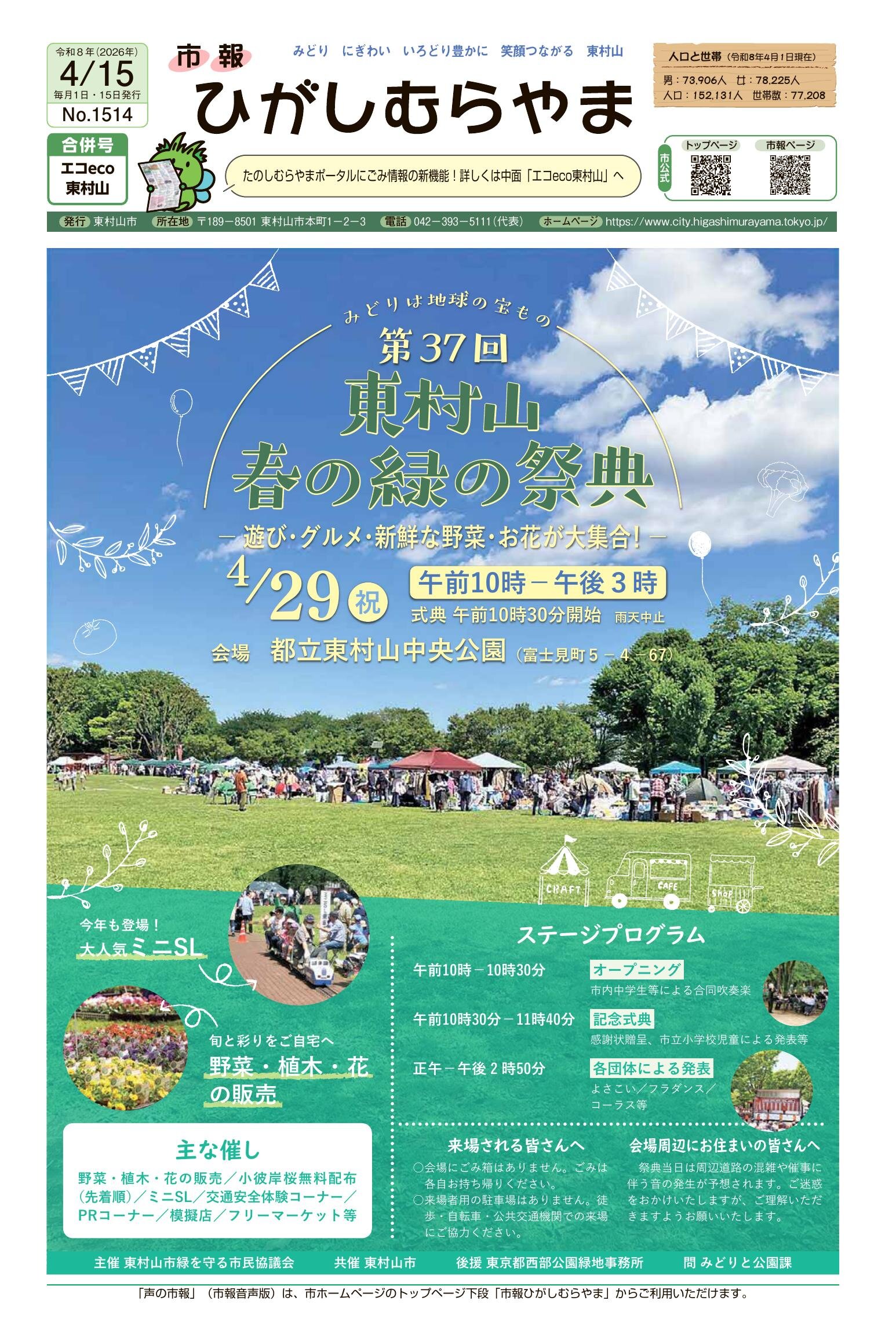市報ひがしむらやま 令和8年4月15日号
