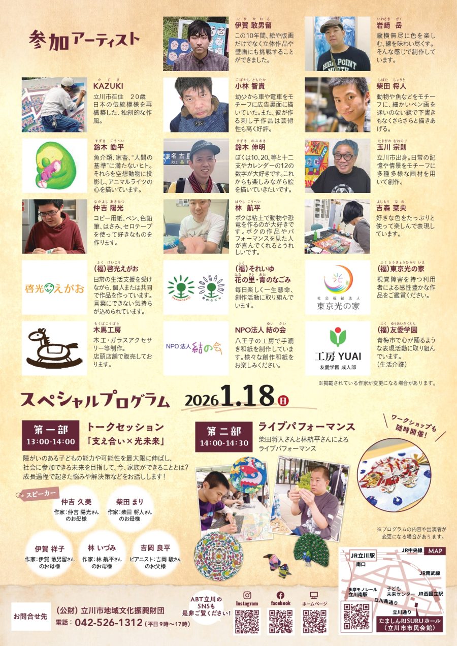 アール・ブリュット立川2026企画展 障がい者アート ~光未来「Live Together」~≪全て参加無料≫