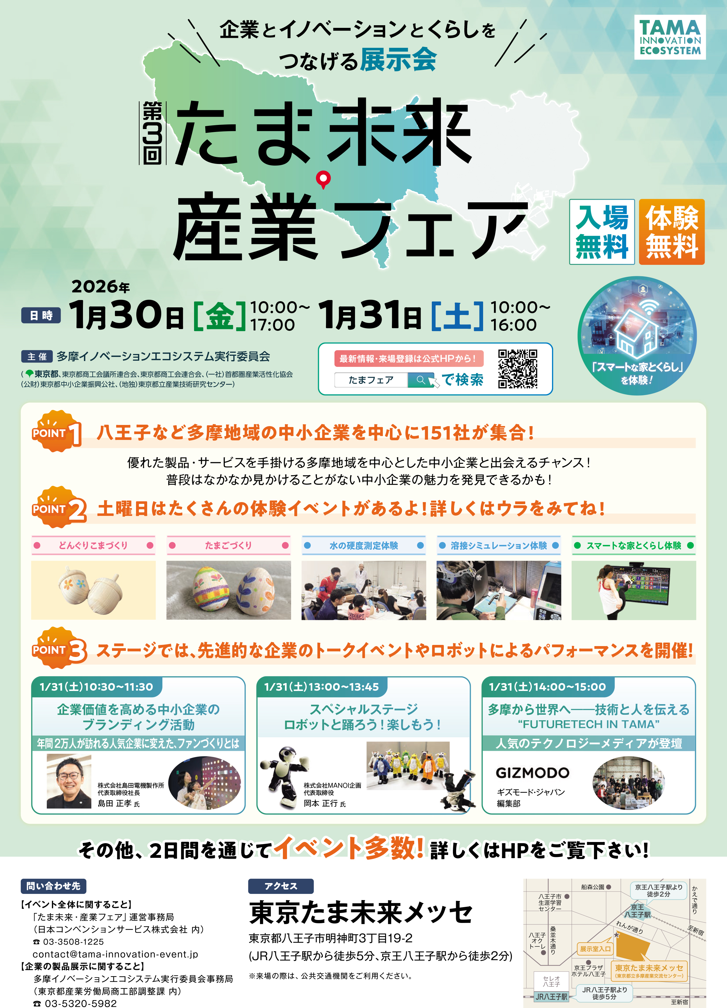 楽しみながら多摩地域の産業に触れることができる今回のイベントは、事前来場登録で当日スムーズに入場できます。