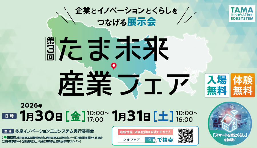 2026年1月30日(金)、31日(土)多摩地域の企業と未来をつなぐ展示会「第3回 たま未来・産業フェア」が開催されます。最新技術や製品、地域資源が集まるこのイベントで、産業とくらしの未来を体感してみませんか?