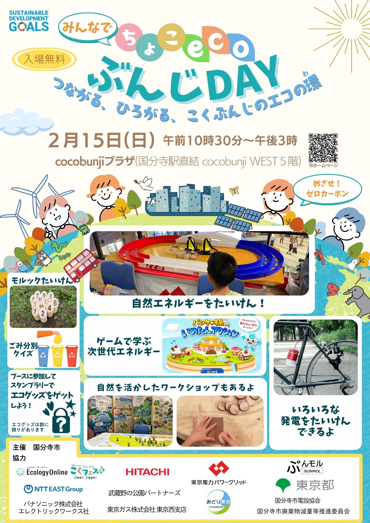 「みんなでちょこeco ぶんじDAY」は、ゲーム、発電体験、間伐材クラフトなど楽しみながら環境について学ぶことができます。つながる、ひろがる、こくぶんじのエコの環をあなたも一緒に広げませんか?