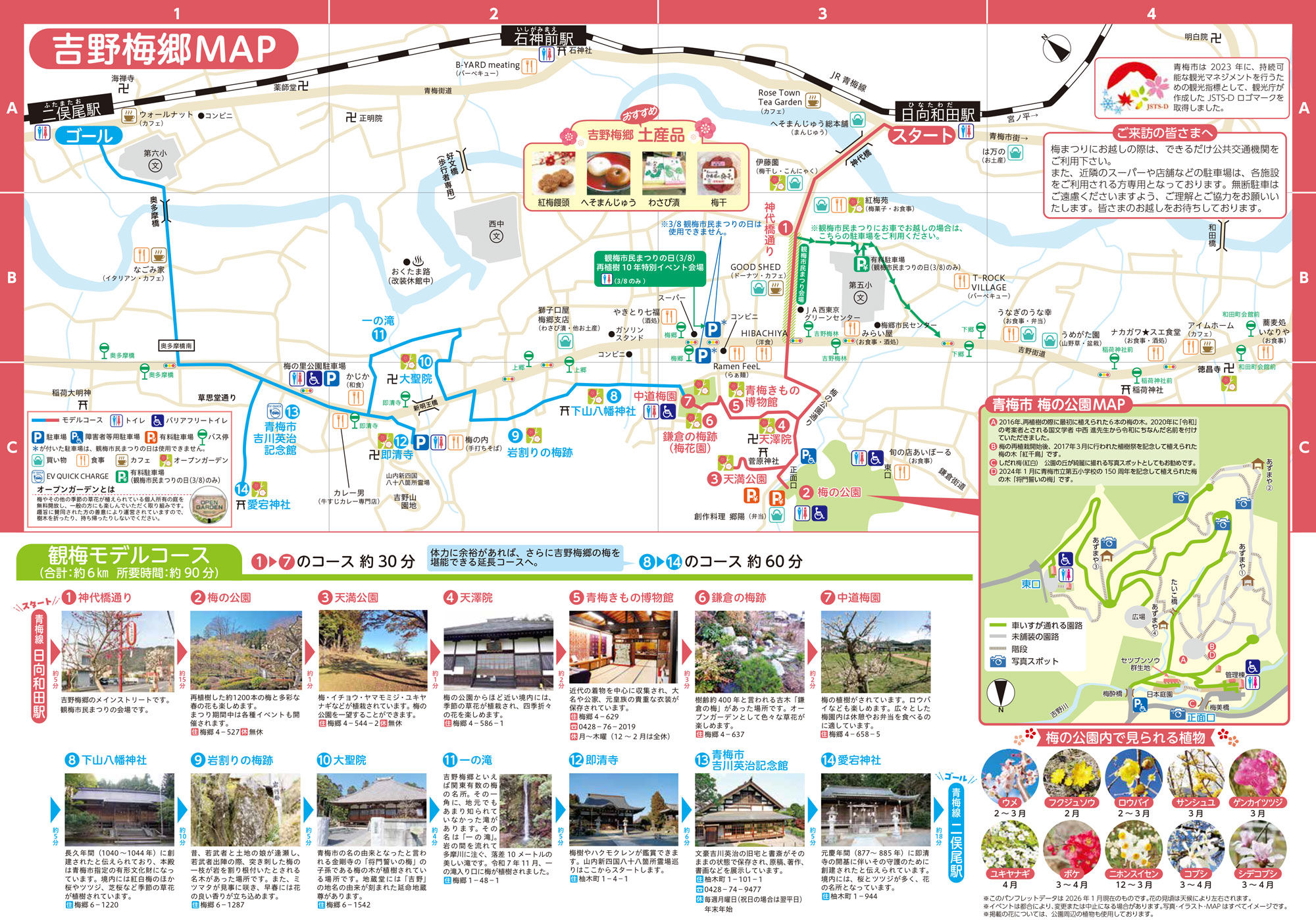 青梅市観光協会が発行する梅まつりのリーフレットではマップを元にモデルコースを紹介しています。