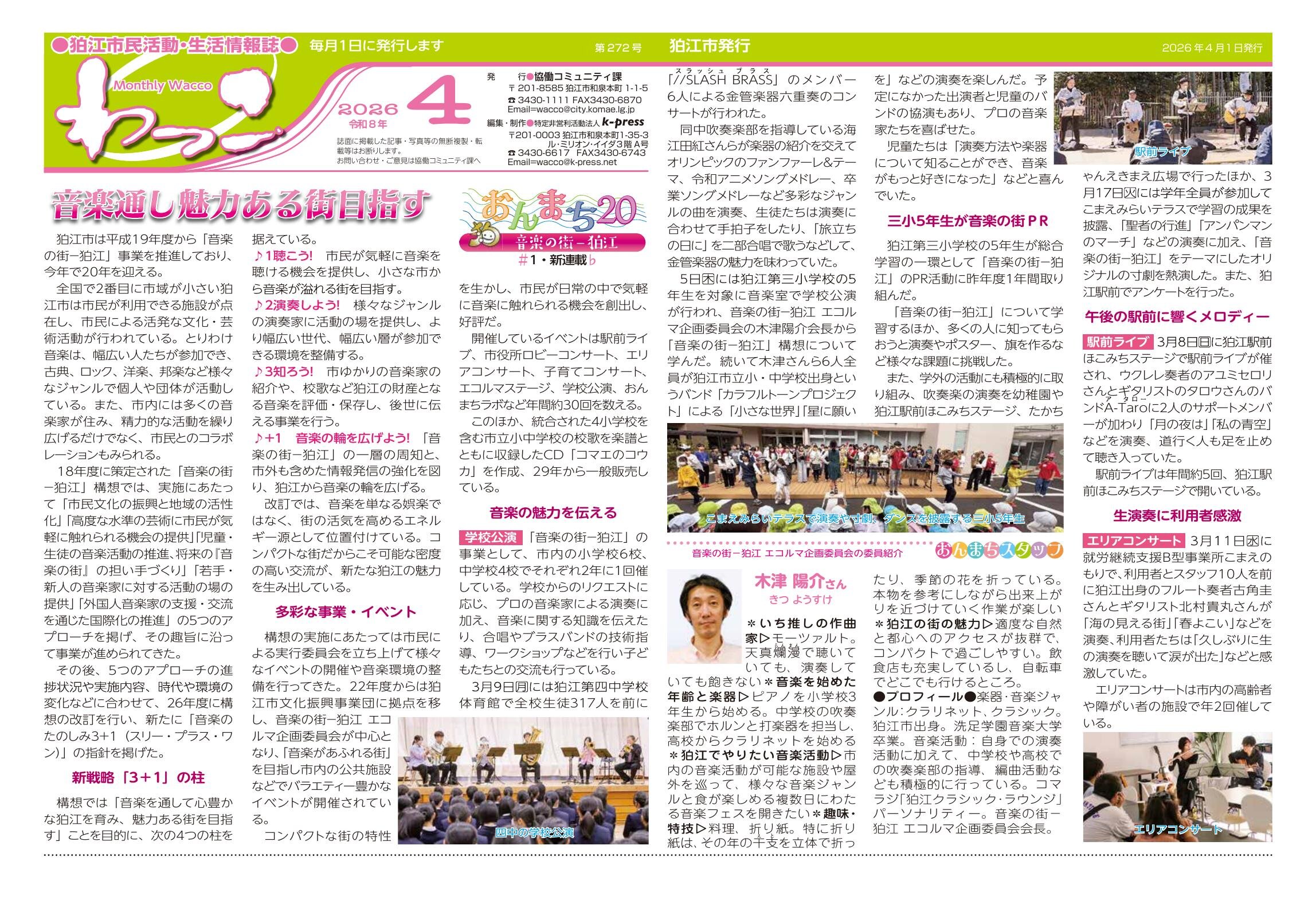 狛江市民活動・生活情報誌 わっこ 令和8年2月号 電子ブックを読む 電子ブックを読む 狛江市民活動・生活情報誌 わっこ 令和8年2月号 エリア 狛江市 カテゴリー 情報誌 発行日 2026年02月01日 掲載団体 狛江市 関連URL 狛江市公式サイト 電子ブックの紹介 暮らしに潤いと健康を提供 デイサービス 介護者の負担も軽減 一日型と半日型 心身のリフレッシュに効果 ショートステイ 短期間宿泊し介護受ける 全国老人クラブ連合会が狛老連女性部に「活動賞」 2月のシルバー催事記 ※掲載されている電子ブックの内容等に関するお問い合わせは、掲載団体へ直接お問い合わせください。 関連する電子ブック 狛江市 狛江市民活動・生活情報誌 わっこ 令和8年4月号 情報誌 狛江市 広報こまえ 令和8年3月15日号 広報誌 狛江市 狛江市民活動・生活情報誌 わっこ 令和8年3月号 情報誌 狛江市 広報こまえ 令和8年3月1日号 広報誌 狛江市 広報こまえ 令和8年2月15日号 広報誌 狛江市 広報こまえ 令和8年2月1日号 広報誌