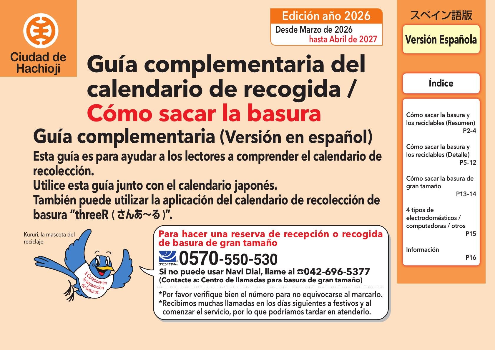 2026年度版家庭用ごみ・資源物収集カレンダー外国補助冊子(スペイン)