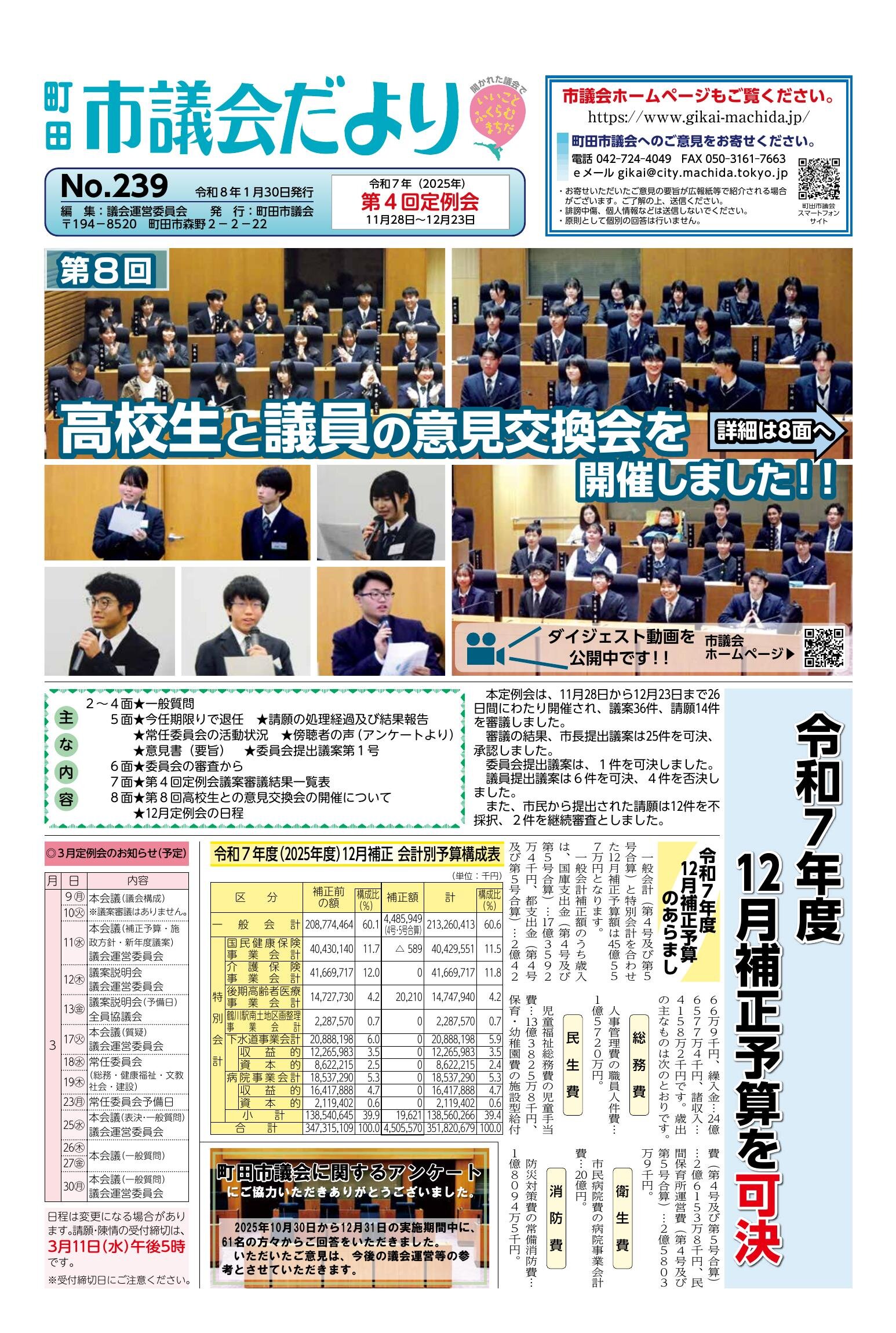 町田市議会だよりNo.239 令和8年1月30日発行